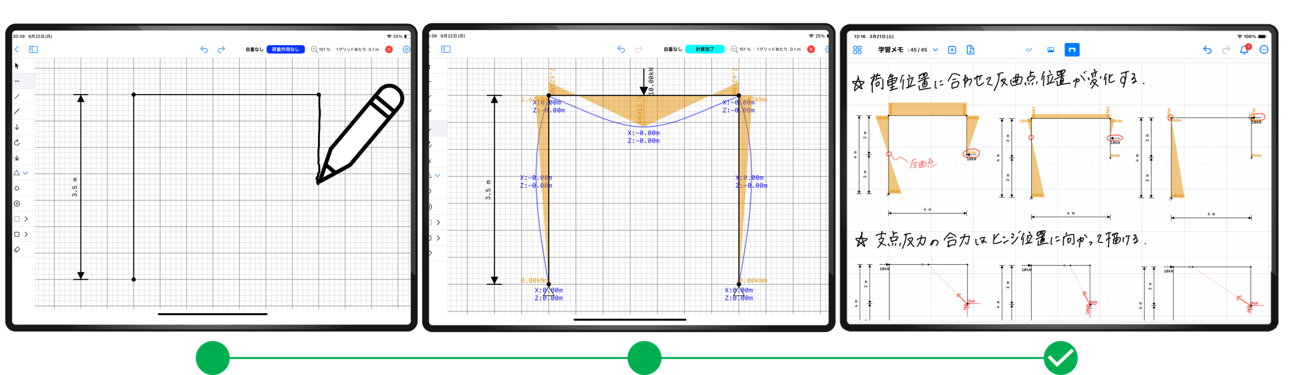 建築設計に携わるすべての技術者が構造的直観力を共有し、安全で魅力ある建築物を創り続けられる社会に貢献したい。このコンセプトのもと当社が開発した「MystructureNote」は、構造技術者のみならず、あらゆる技術者が自ら建築構造を手軽に検討できるデジタルノートアプリです。PCのブラウザやiPadのアプリからすぐにアクセスでき、手描き操作でモデルを描くと、リアルタイムに解析結果が可視化されます。さらに、試行錯誤のプロセスを記録・蓄積することで、これまで個人に閉じていた「構造の勘所」を組織の知見へと継承します。